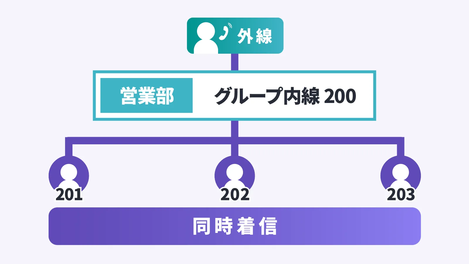 電話番号ごとに指定した内線を同時着信させることが可能です。内線をあらかじめグループ化することもでき、WEB管理画面からいつでも着信先内線を変更もできます。