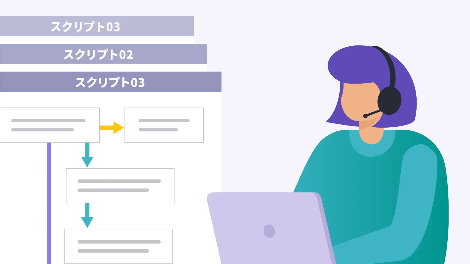 管理画面にてトークスクリプトを作成し、業務別、ユーザー別に割り当ててコール画面に表示させることが可能です。