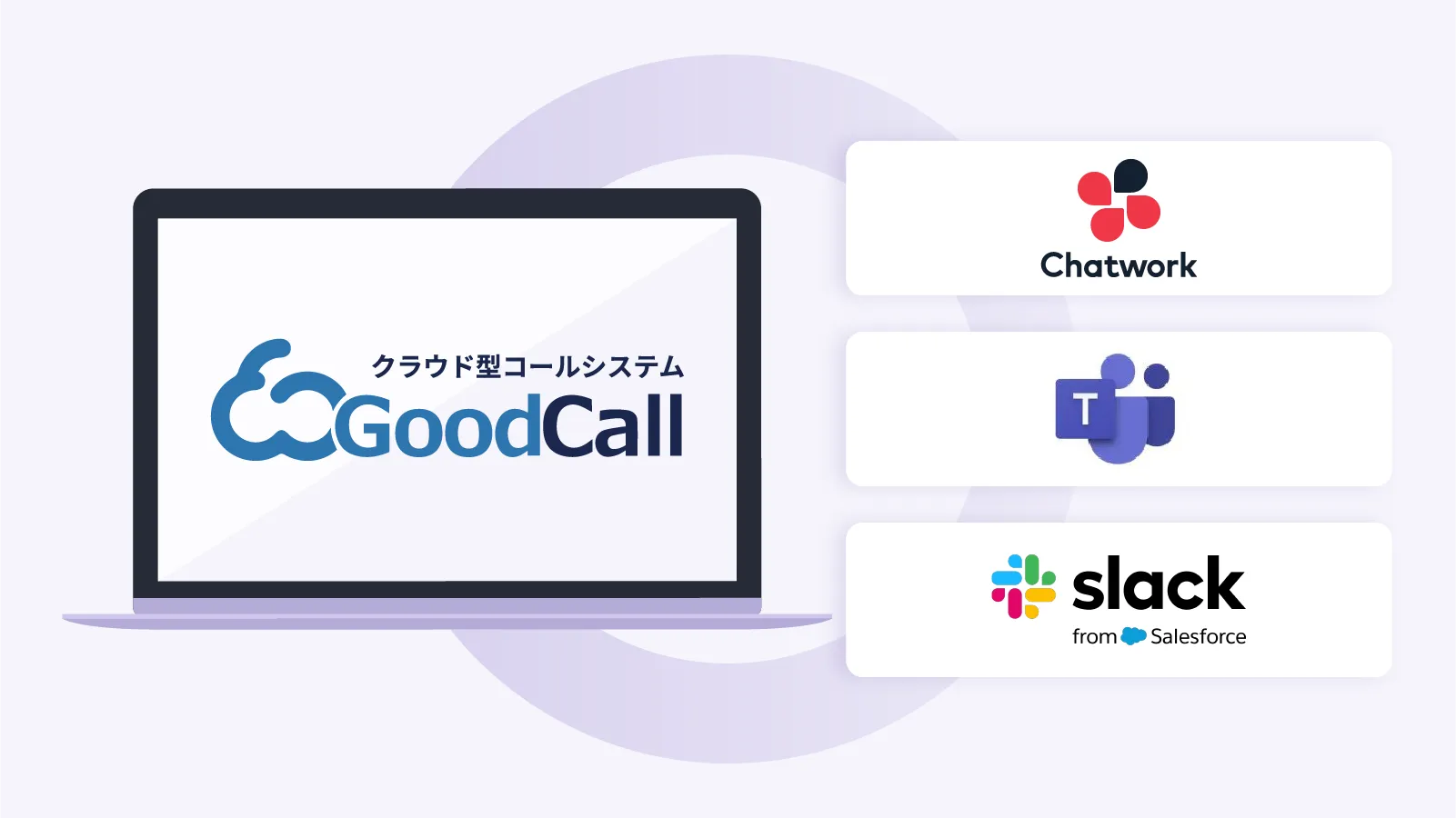 各種チャットツールと連携させることで、任意のチャンネルに不在着信やアナウンス設定時間外の着信の通知に加え、GoodLine上でのメモの通知や、ユーザーのログイン・ログアウトや休憩中・取込み中などの稼働状況などを通知することが可能です。