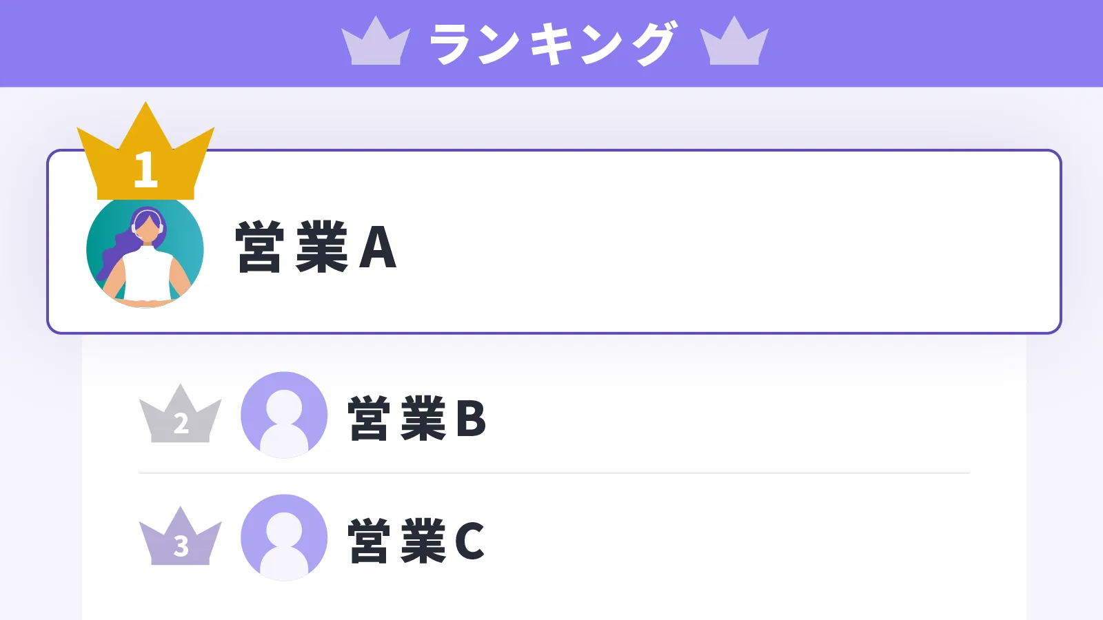 あらかじめ設定した実績項目と稼働日時からユーザー別に生産性と成果をランキング形式で表示できます。こちらは非表示にもできます。