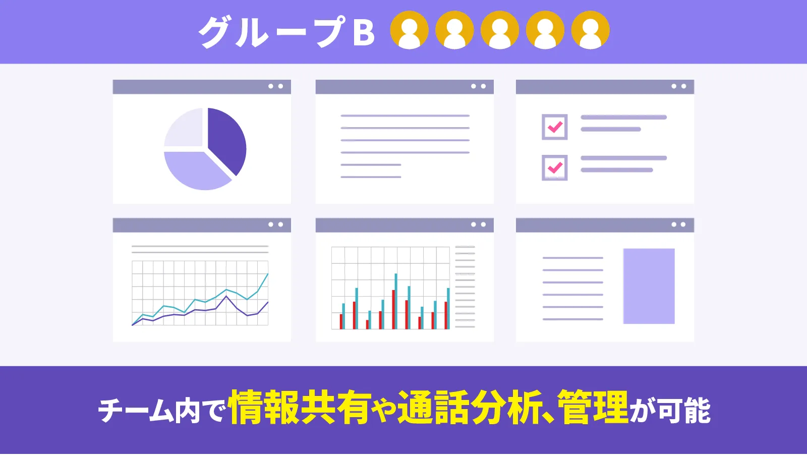 部署や拠点などグループごとにチームを作成しユーザーをチームに所属させ、チーム内だけでの情報共有や通話分析、管理が可能です。